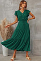 Laissez-vous séduire par la Robe Bohème Verte Florale Empire - Eléonora, une pièce qui incarne à la perfection l'esprit bohème des années 70. Alliant une teinte verte vibrante à un motif floral dessiné à la main, cette robe est le reflet d'un style à la fois romantique et glamour. Sa coupe Empire, associée à un tissu luxueux qui coule gracieusement, fait d'elle une pièce incontournable pour les beaux jours. Les détails soigneusement élaborés, tels que le dos nu, ajoutent une touche sexy et raffinée, faisant de cette robe une véritable ode à la féminité.