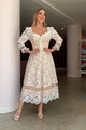 Élia, la quintessence du romantisme bohème. Inspirée par l'esprit bohème des années 70, cette robe de mariage est une ode à la féminité insouciante. La dentelle délicate qui orne sa moitié supérieure évoque une douce brise d'été, tandis que ses manches cloche ajoutent une touche de fantaisie, rappelant les jours flower-power.